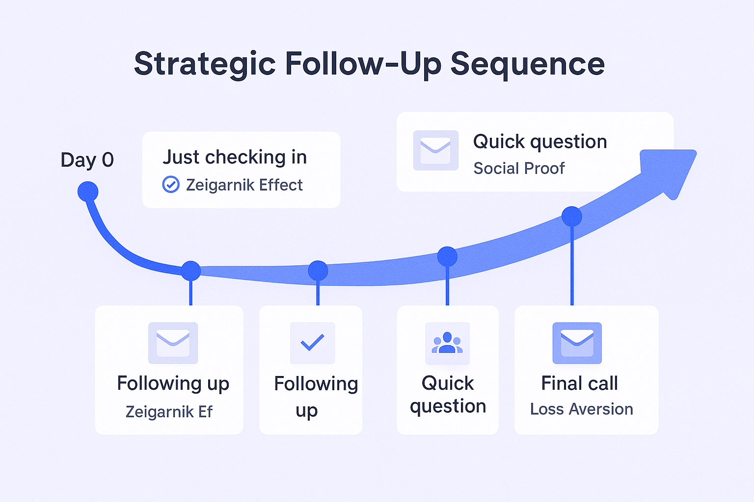 Rather than random timing, each follow-up should serve a specific psychological purpose: