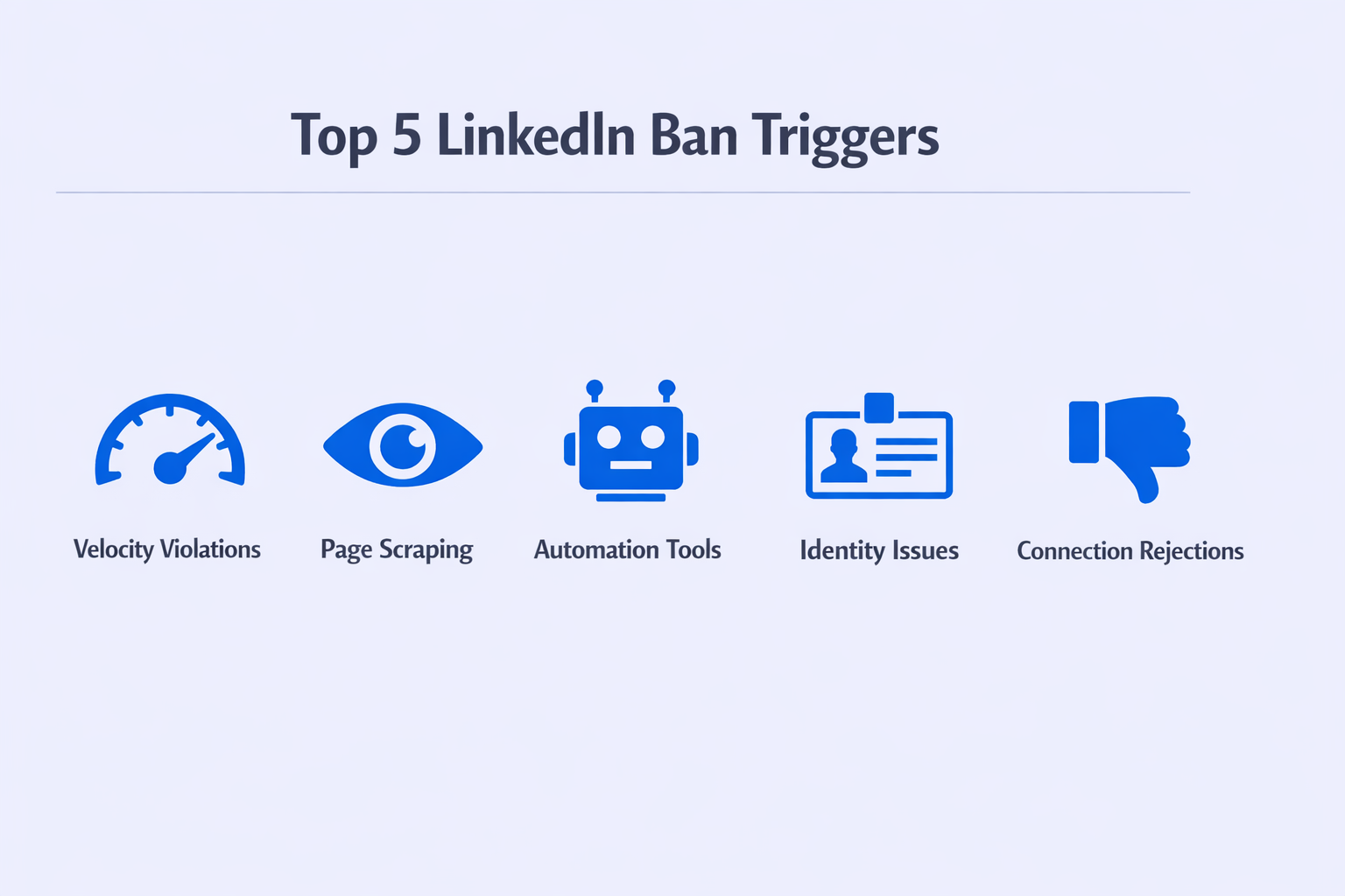 Velocity violations are the #1 killer. Send connection requests too fast? Flagged. The algorithm expects humans to spend 30-60 seconds reviewing profiles. If you’re sending requests every 5-10 seconds, you look like a bot. Most accounts max out at 100 connection requests per week, but it’s the speed that really matters, not just the total count.