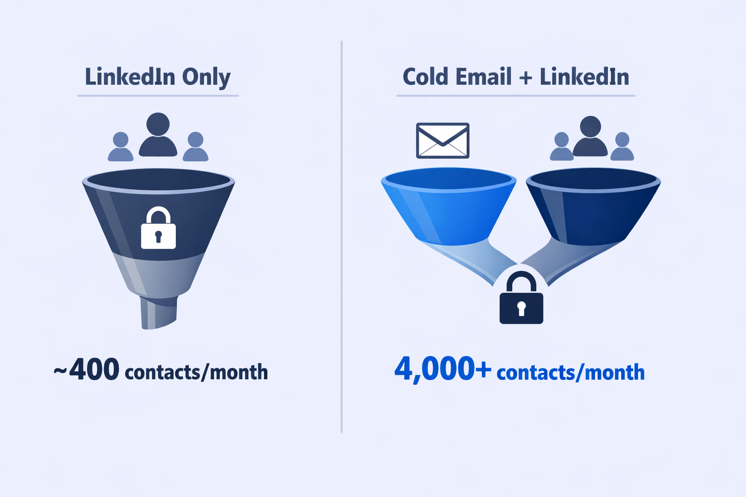 LinkedIn caps you at ~400 contacts per month. Cold email reaches thousands. Same targeting precision, zero platform dependency. Complete outbound strategy included.