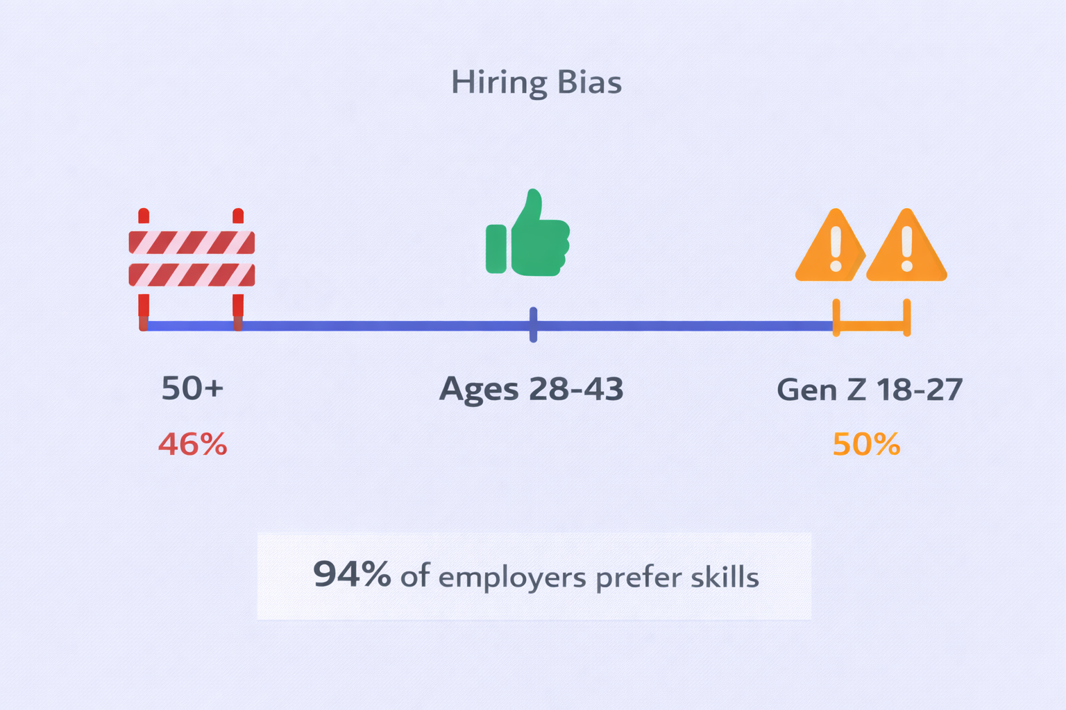Workers over 40 are 46% less likely to get an interview than younger candidates with identical qualifications. Nearly 42% of hiring managers admit they consider age when reviewing resumes. And 33% specifically express concerns about hiring older applicants.