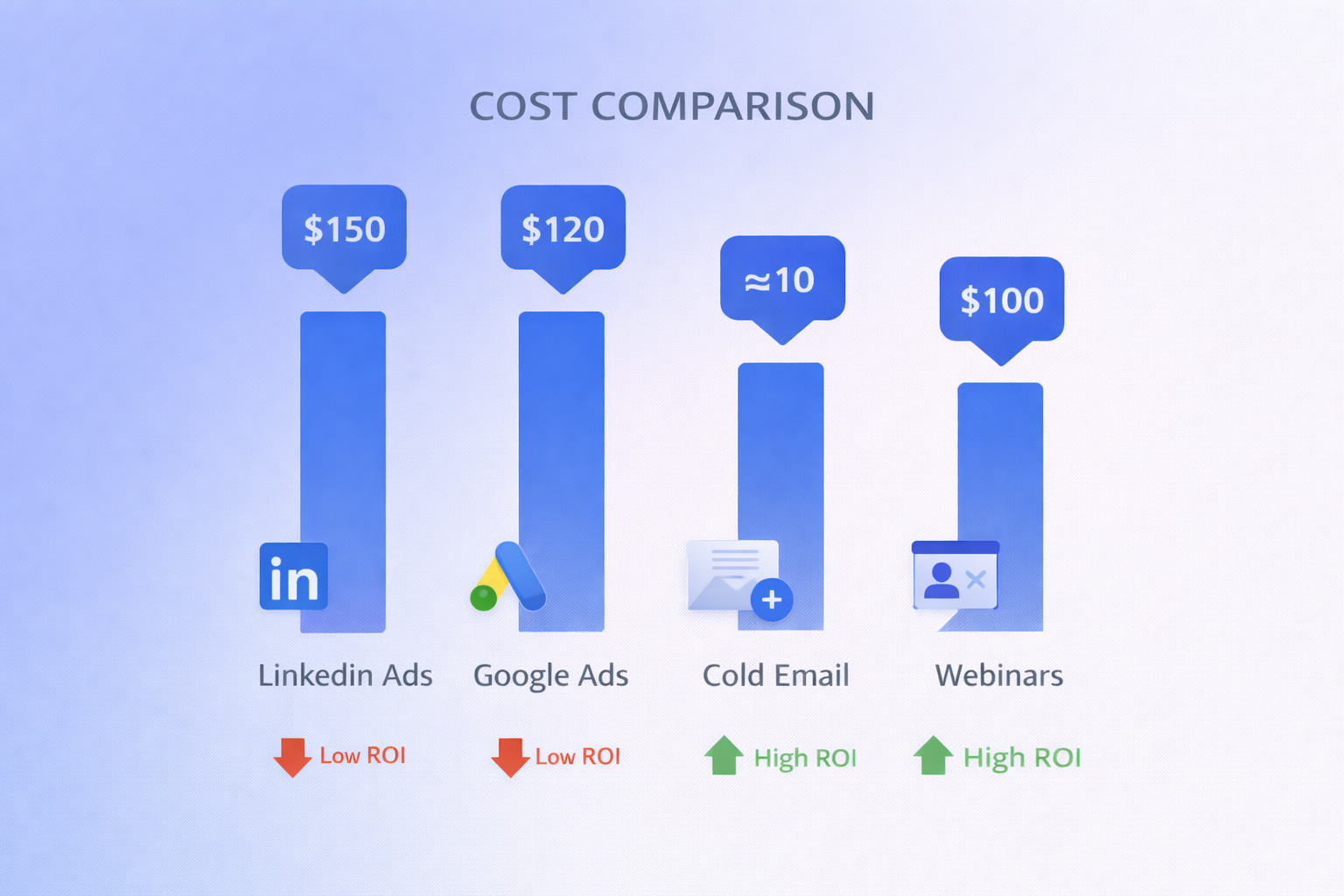 Cold Email | $25 – $75 | Most cost-effective with good data |