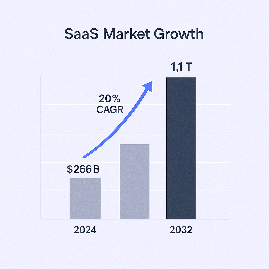 - Global SaaS market reached over $266 billion in 2024 – projected to hit more than $1.1 trillion by 2032
