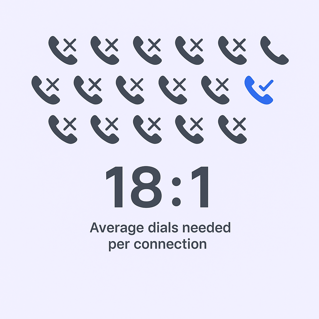 But here’s what makes this even harder: it takes an average of 18 dials just to connect with a single prospect. Yeah, you read that right.