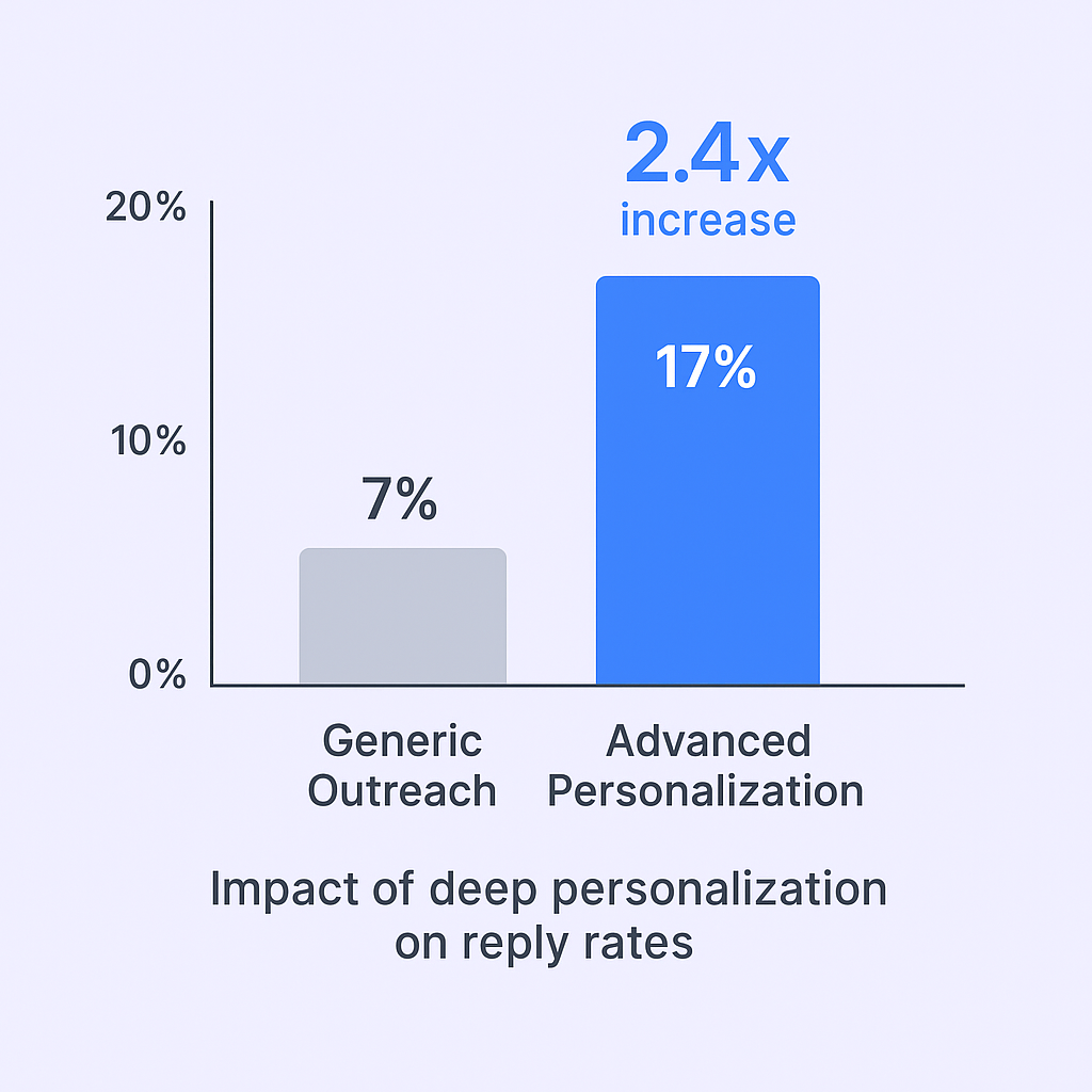 Advanced personalization—using specific, researched details about a prospect or their company—can more than double your reply rates (from 7% to 17%).
