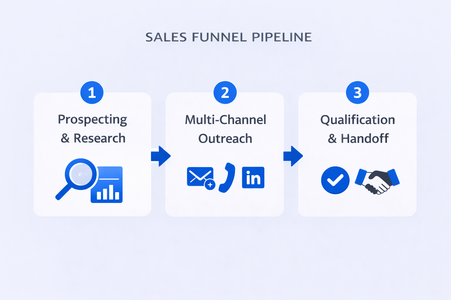 Sales development services are specialized functions that focus exclusively on the top-of-funnel activities: prospecting, outreach, and qualification. Think of them as your pipeline architects—the team that identifies your ideal customers, engages them at the right moment, and hands over sales-ready opportunities to your closers.