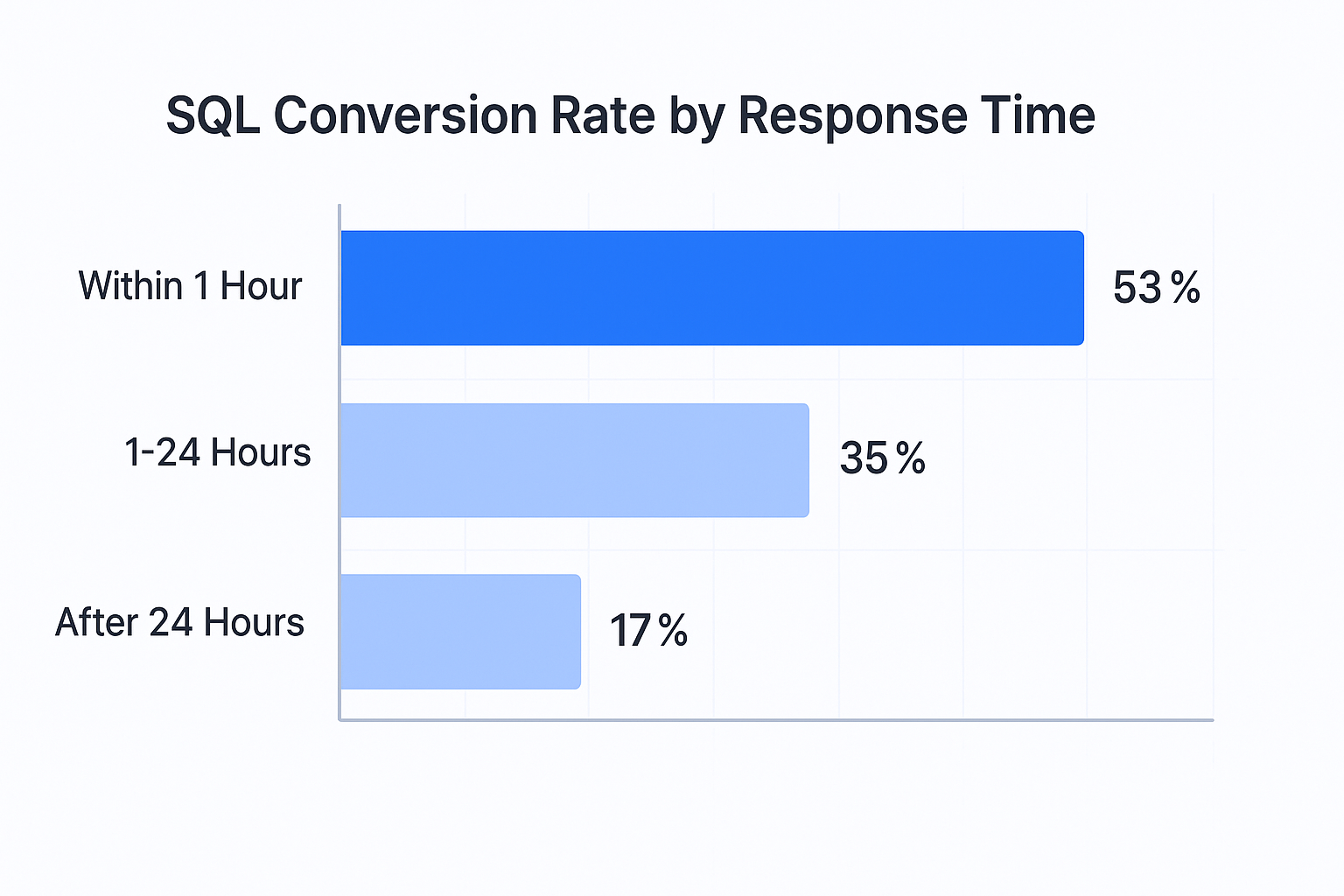 Then there’s the speed problem. Research shows that 82% of consumers expect responses within 10 minutes, yet the average lead response time is 47 hours. Just 27% of leads get contacted at all. Companies that follow up within the first hour report a 53% conversion rate, compared to just 17% for follow-ups after 24 hours. Timing isn’t everything—it’s the only thing.