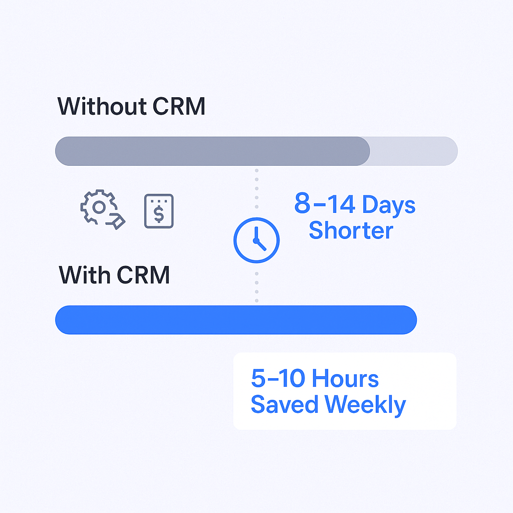 The time savings alone justify the investment. CRMs help employees save 5-10 hours per week by automating repetitive tasks, and they shorten the average sales cycle by 8-14 days. In cold outreach specifically, where every day counts, that cycle reduction can transform your quarterly numbers.