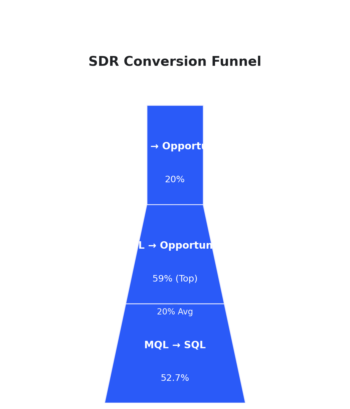 But here’s where things get interesting. Top-performing SDR teams convert 59% of SQLs into opportunities, based on Gartner’s research. The average? Only about 20%. That gap between mediocre and excellent is massive—and it’s where you’ll find your biggest opportunity for improvement.