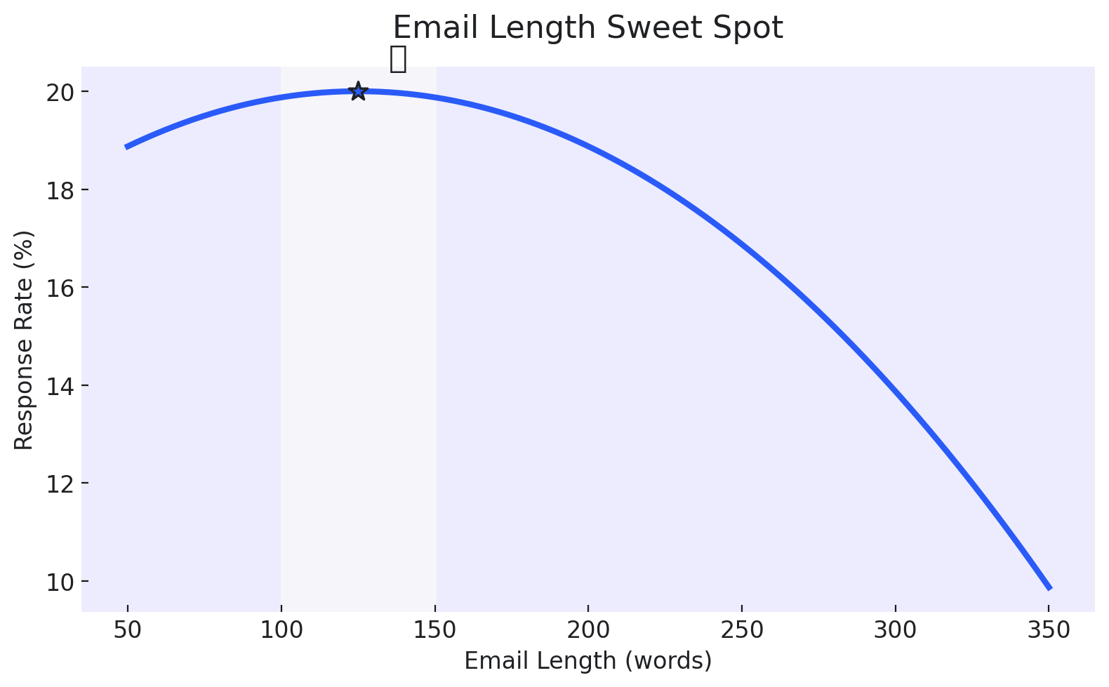 The sweet spot: Emails under 125 words consistently outperform longer ones. Some high-performing campaigns with ultra-focused messages hit 50% reply rates by keeping it incredibly concise.