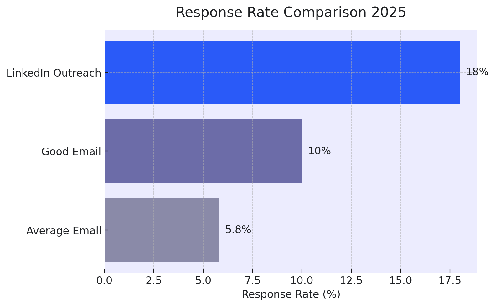LinkedIn outreach delivers 3x better engagement with native personalization and zero spam filters.
