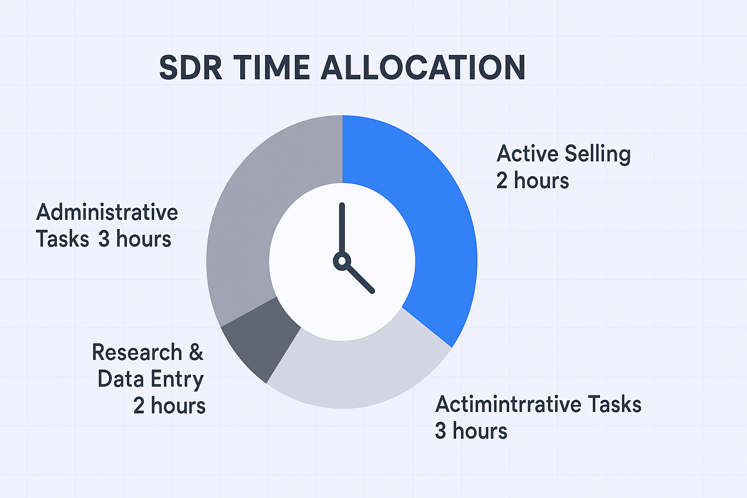 SDRs spend just 2 hours per day actively selling. Read that again. Two hours. Out of an eight-hour workday.
