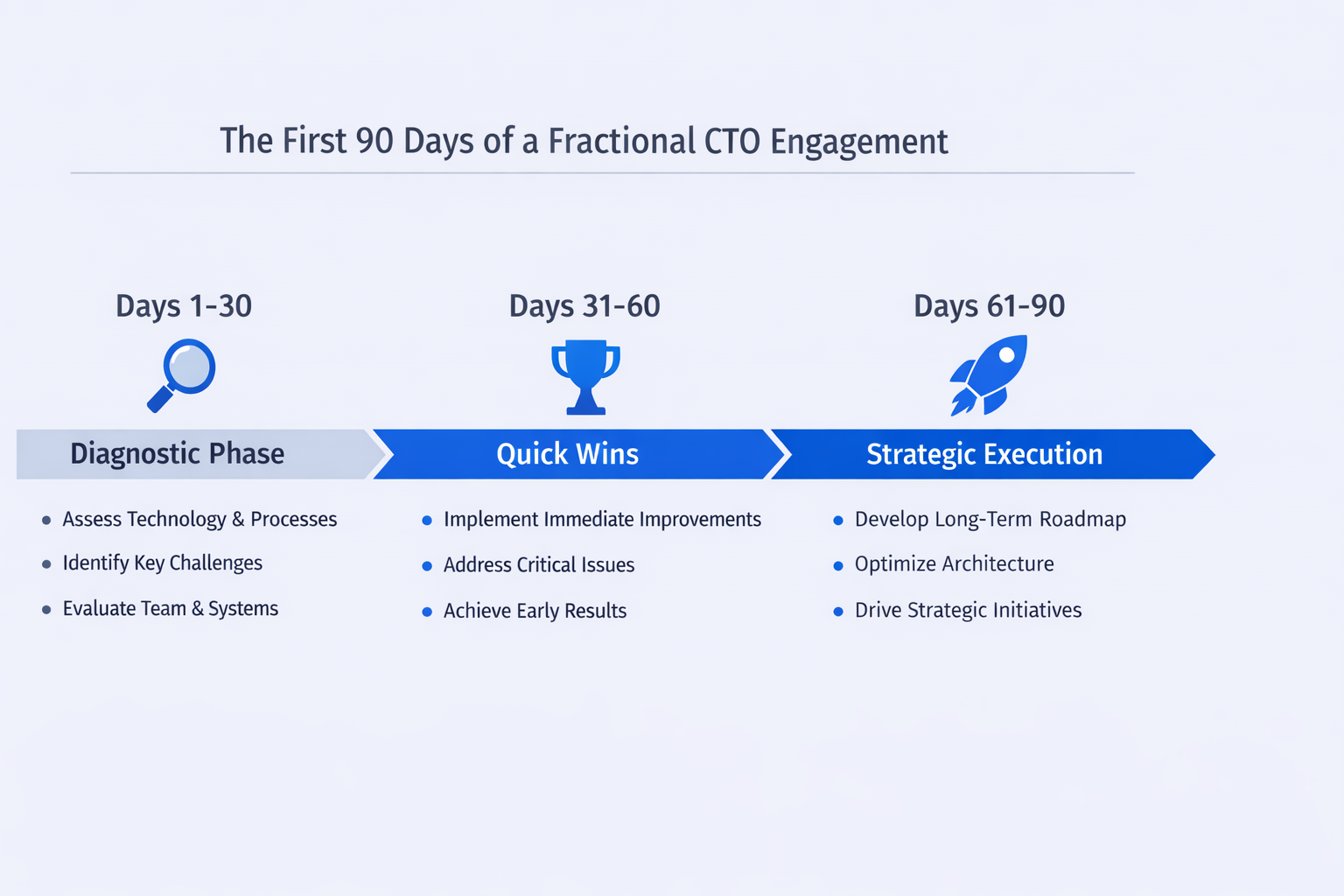 Fee structure: $15,000-$50,000 per engagement, often leading to interim or fractional CTO roles post-acquisition.