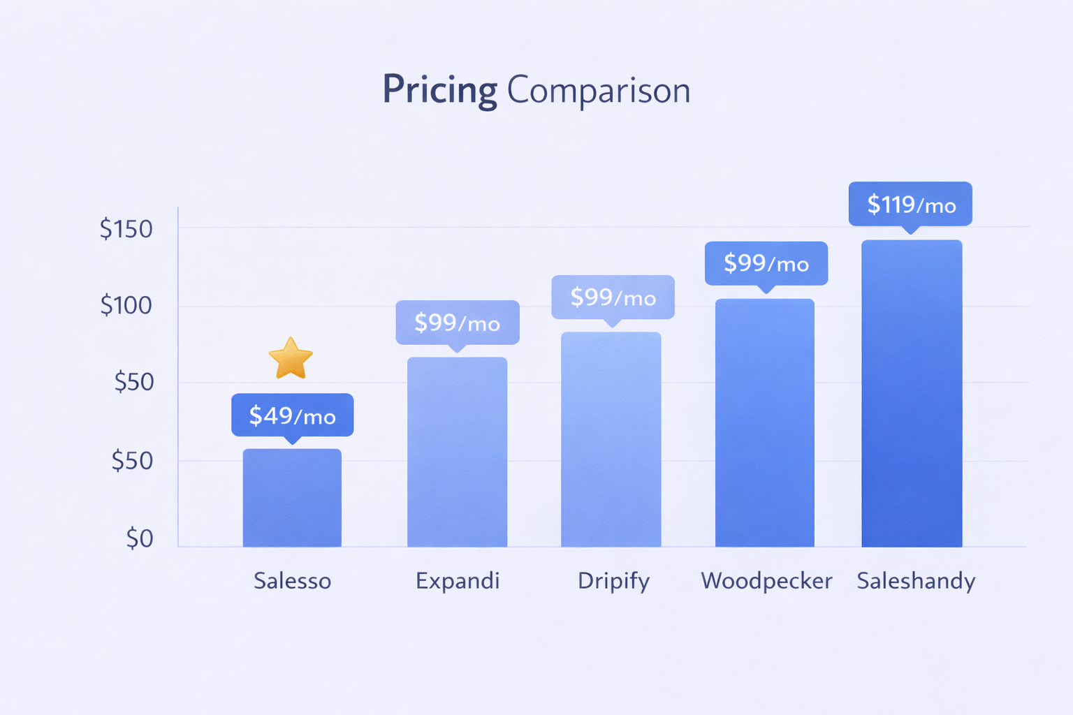 Saleshandy targets growth teams who need volume without breaking the bank.